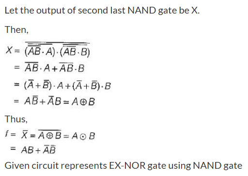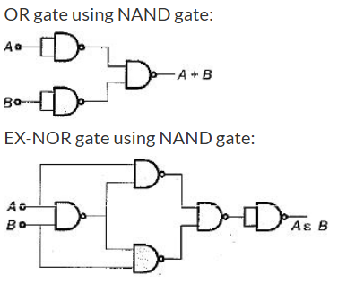 Thus, we require 3 NAND gates for an OR gate while 5 NAND gates for an EX-NOR gate.