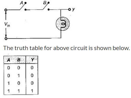 Hence, the output y is equivalent to output of an AND gate having two inputs A and 6. Thus, an AND gate is equivalent to a series switching circuit.