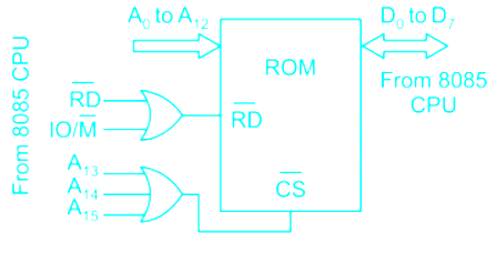 A13, A14, A15 are chip select lines. To select chip, the output of OR gate should be zero