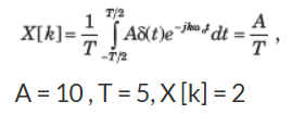 \( \Rightarrow {c_k} = \frac{A}{T}\mathop \smallint \nolimits_0^{\frac{{3T}}{{10}}} {e^{ - jk{\omega _0}t}}dt\)