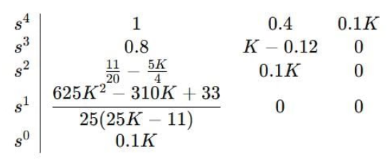 \({C_M} = \left[ {B\;AB} \right] = \left[ {\begin{array}{*{20}{c}} {\frac{1}{{{T_1}}}}&{ - \frac{1}{{T_1^2}}}\\ {\frac{1}{{{T_2}}}}&{ - \frac{1}{{T_2^2}}} \end{array}} \right]\)