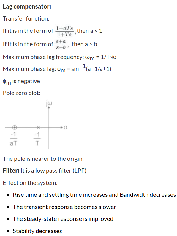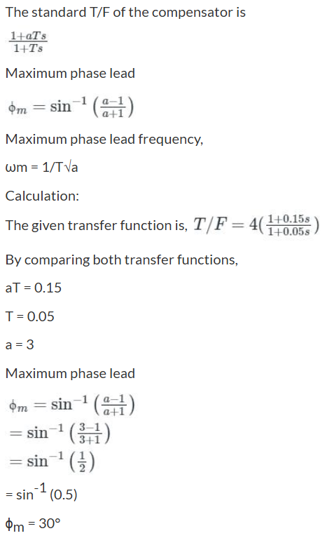 Gain margin \(= \frac{1}{{\left| {G\left( {j{\rm{\omega }}} \right)H\left( {j{\rm{\omega }}} \right)} \right|}}\;at\;{\rm{\omega }} = {{\rm{\omega }}_{pc}}\)