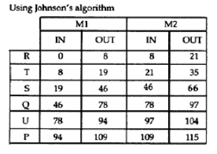 A manufacturing shop processes sheet metal jobs, wherein each job must pass through two machines (M1 and M2, in that order). The processing time (in hours) for these jobs is: