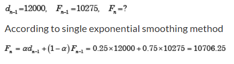 The demand and forecast for February are 12000 and 10275, respectively. Using single exponential smoothening method (smoothening coefficient = 0.25), forecast for the month of March is: