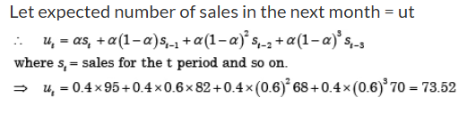 The sales of cycles in a shop in four consecutive months are given as 70, 68, 82, and 95. Exponentially smoothing average method with a smoothing factor of 0.4 is used in forecasting. The expected number of sales in the next month is:
