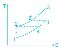 \(\eta = 1 - \frac{{{C_p}\left[ {{T_3} - {T_2}} \right]}}{{{C_p}\left[ {{T_4} - {T_1}} \right]}}\)
