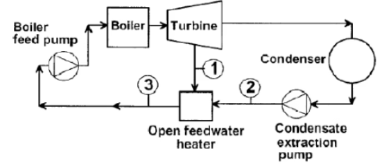 \({\eta _{Rankine}} = \frac{{{h_1} - {h_2}}}{{{h_1} - {h_4}}}\)  [h4 = h3, neglecting pump work]