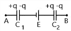 \(\therefore  {q}=\frac{\left[\left({V}_{{A}}-{V}_{{B}}\right)+{E}\right] {C}_{1} {C}_{2}}{{C}_{1}+{C}_{2}}\)