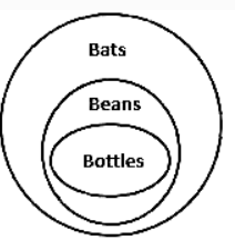 I. All bats are bottles – False (It is possible but not definite. As all bottles are beans and all beans are bats, imply that some bats are bottles. so false.)