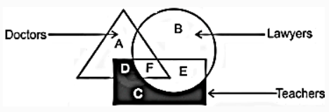 In the following figure, the triangle represents Doctors, the circle represents Lawyers and rectangle represents Teachers. Which set of letters represents Teachers who are not Lawyers?