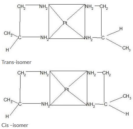 Square planar complexes having symmetric bidentate ligands carrying one or more substituents can form geometrical isomers. Because, such ligand show kind of asymmetry. Here pn (propylenediamine) shows this kind of nature hence leading to geometrical isomerism.