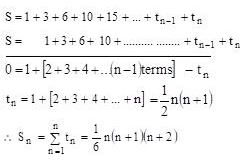 1 + 3 + 6 + 10 + 15 + ……………………….n terms is