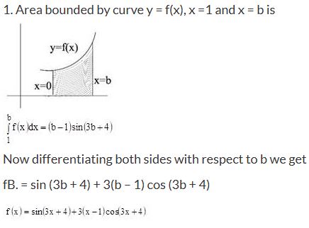 The area bounded by curves y = f(x), the x-axis and the ordinates x = 1 and x = b is (b - 1) sin (3b + 4). Then f(x) is-