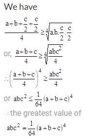 a, b, c are positive numbers and abc2 has the greatest value 1/ 64. Then