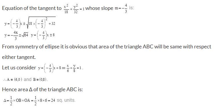A tangent having slope of  intersects the major and minor axes in points A and B respectively. If C is the center of the ellipse then the area of the triangle ABC is: