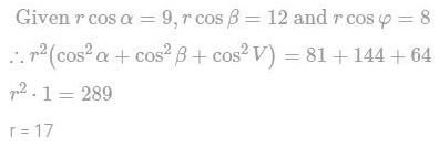 If the projections of a line on the axes are 9, 12 and 8. Then the length of the line is?