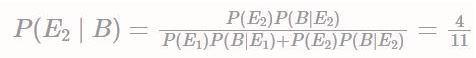 We have P (E1) =  1/2, P (E2) = 1/2, P (B | E1) = 2/8, P (B|E2) = 1/7