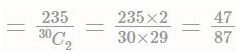 Two numbers x and y are chosen at random without replacement from the first 30 natural numbers. The probability that  x2 - y2 is divisible by 3 is