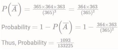 The probability that in a group of 3 people, at least two will have the same birthday is