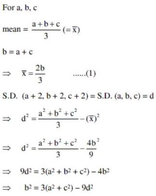 Consider three observations a, b and c such that b = a + c. If the standard deviation of a + 2, b + 2, c + 2 is d, then which of the following is true?
