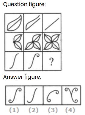 In this question find which of the answer figures (1), (2), (3), and (4) complete the question figure matrix.
