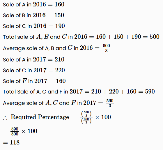 The average sale of branches A, C and F in 2017 is what percent of the average sale of branches A, B and C in 2016?