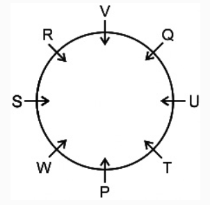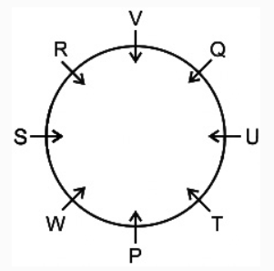 Given: Eight friends - P, Q, R, S, T, U, V and W are sitting around a circle facing the centre but not necessarily in the same order.