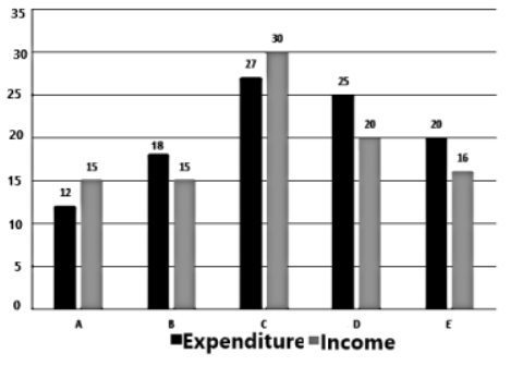 The following bar graph shows the income and expenditures (in crore) of five companies A, B, C, D, E in the year 2017.