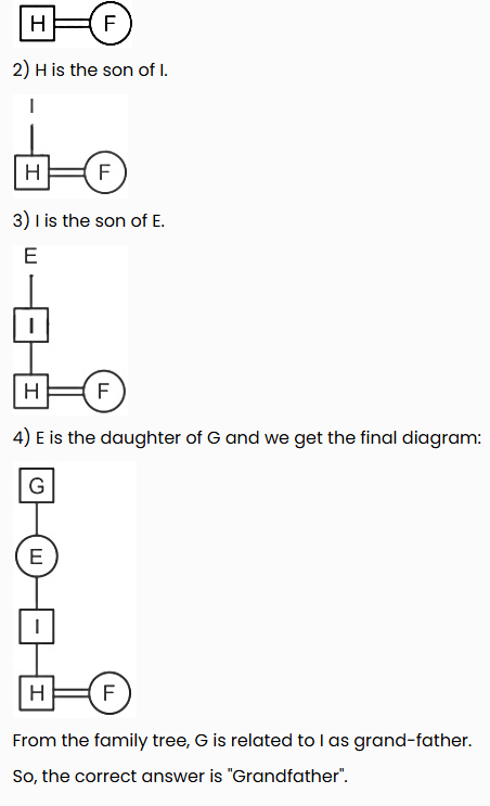 1) F is the wife of H.