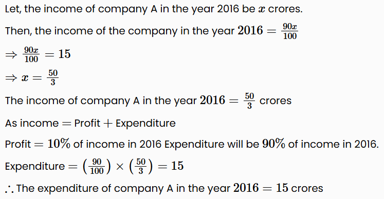 If the income of company A in the year 2017 was 10% less than its income in the year 2016 and the company had earned a profit of 10% in the year 2016, then find its expenditure in the year 2016 (in crores).