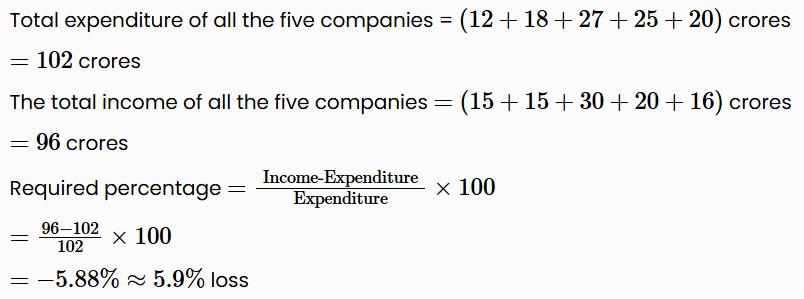 What was the approximate percentage of profit/loss of all the five companies together? (If it is calculated on expenditure)