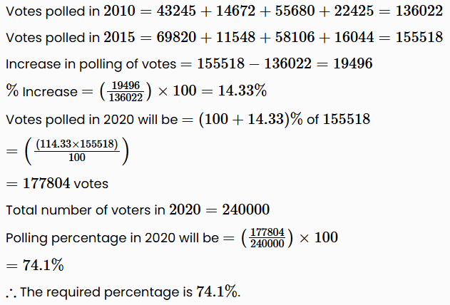 If the percentage increase in polling from 2015 to 2020 remains equal to that from 2010 to 2015, and the total number of voters in 2020 be 240000, what will be the polling percentage in 2020 ?