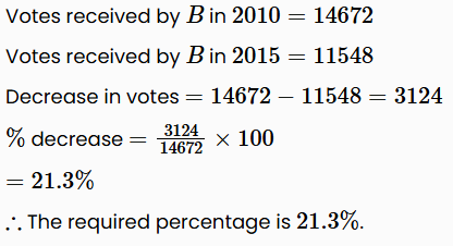 By what percentage did the votes received by B in 2010 decreased in 2015?