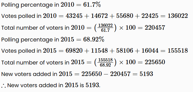 The following bar graph shows the number of votes received by 4 candidates in the elections in the years 2010 and 2015. Study the bar graph and answer the questions that follow.