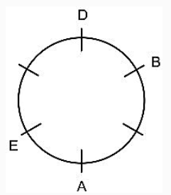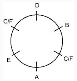 Six friends A, B, C, D, E and F are sitting around a circle facing the centre. B is sitting second to the right of A. D is sitting second to the left of E.D is not an immediate neighbor of A. Who is sitting to the immediate right of B?