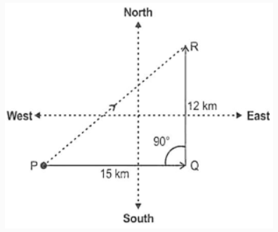 Meera started walking from point P and walk 15 km towards east and stops at point Q. Now, she turns 90° to her left and walks 12 km to reach a point R. In which direction is point R with respect to point P?
