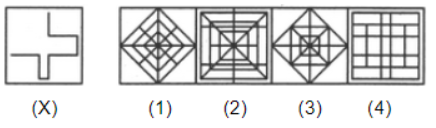 In the following question have given a figure (X) followed by four alternative figures (1), (2), (3) and (4) such that figure (X) is embedded in one of them. Find out the alternative figure which contains figure (X) as its part.