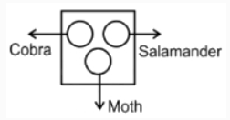 Therefore, the Venn diagram that best represents the relationship among the classes Cobra, Moth, Salamander is as follows: