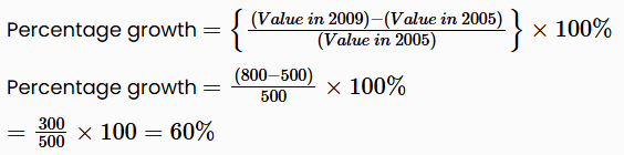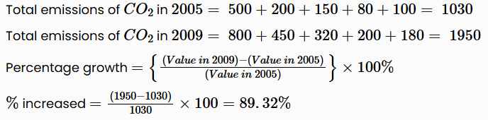Growth of CO2 from power sector during 2005 to 2009 = 800 - 500 = 300 (Just take values of 2009 and 2005 and subtract them)