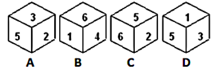 In position (A) and position (D), 5 and 3 are common which means 2 and 1 are opposite to each other.