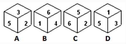 In position (A) and position (C), 5 and 2 are common which means 3 and 6 are opposite to each other.