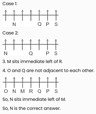 Seven persons M, N, O, P, Q, R, and S are sitting in a row facing north direction. N sits third to the left of Q. Only P is adjacent to S, who does not sit at the extreme left end. M sits immediate left of R. O and Q are not adjacent to each other.