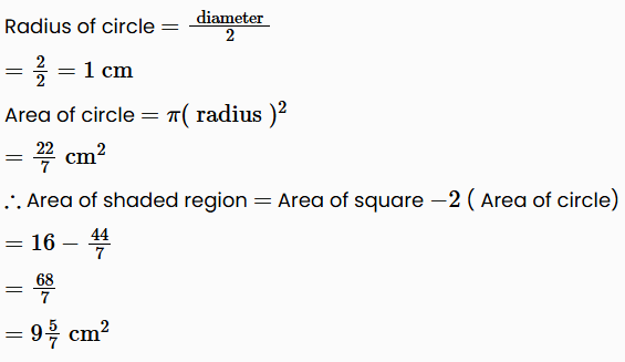 The sum of the area of four quadrants of a circle removed from the corners of the square is equal to the area of the circle of diameter 2 cm.
