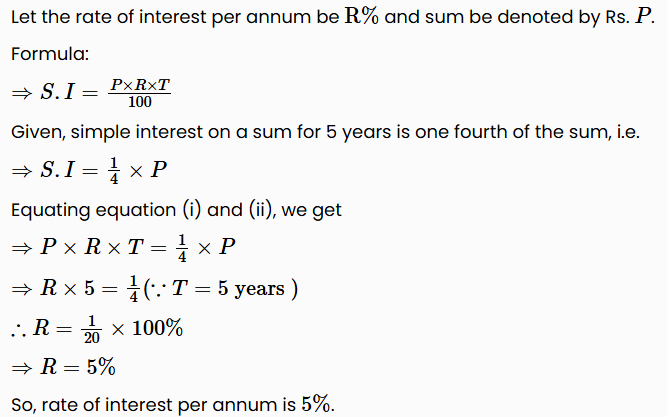 The simple interest on a sum for 5 years is one fourth of the sum. The rate of interest per annum is: