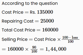 A man purchases a car for 1,35,000 and spent 25,000 on repairs. At what price was the car sold if he suffered a 10% loss on it?
