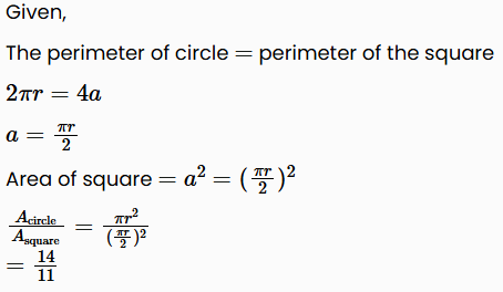 If the perimeter of the circle and square are equal, then the ratio of their areas will be equal to: