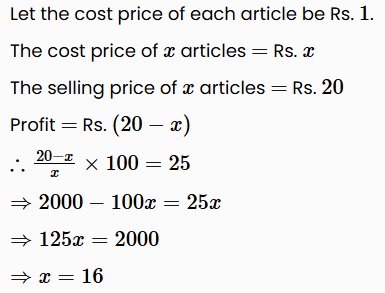 The cost price of 20 articles is the same as the selling price of x articles. If the profit is 25 % , then the value of x is: