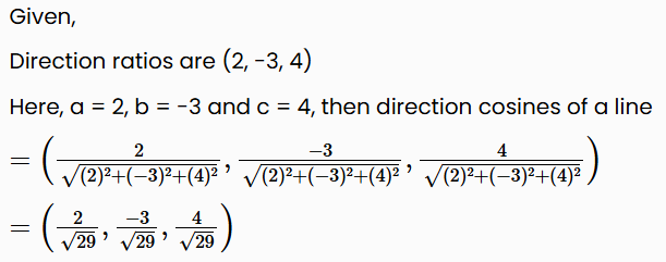 If a line has the direction ratios (2, -3, 4) then its direction cosines are-