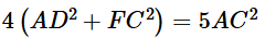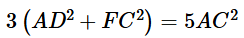 In the figure, ABC is a right angle triangle where F is the midpoint of side AB and D is the midpoint of side BC . What is the relation between AD, CF, and AC?