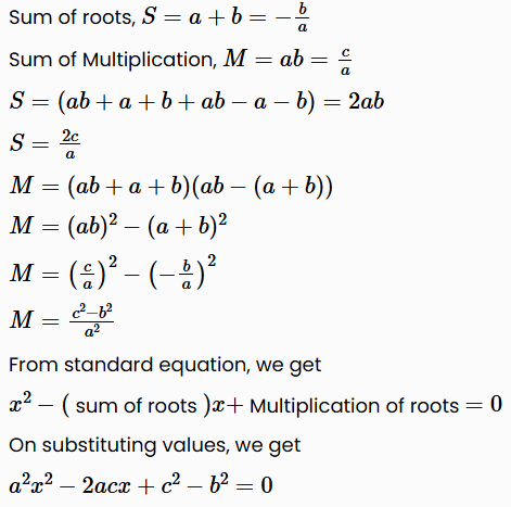 If a and b are roots of the equation ax2 + bx + c = 0, then which equation will have roots (ab + a + b) and (ab − a − b)?